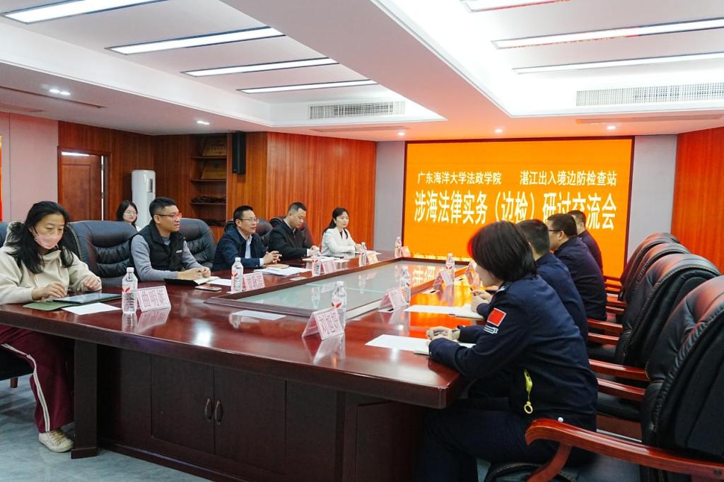 2026年1月14日上午,广东海洋大学法政学院副院长刘澍教授带队到湛江市出入境边防检查站调研,随行人员包括湛江市委党校汤晓龙副教授、海洋法与国际法学系主任张艾妮、海洋法与国际法学系副主任曲明姬以及海大协华曾耿滨、叶春华、杨健永。湛江市出入境边防检查站党委委员、副站长王康接待了此次调研,并主持了座谈会。