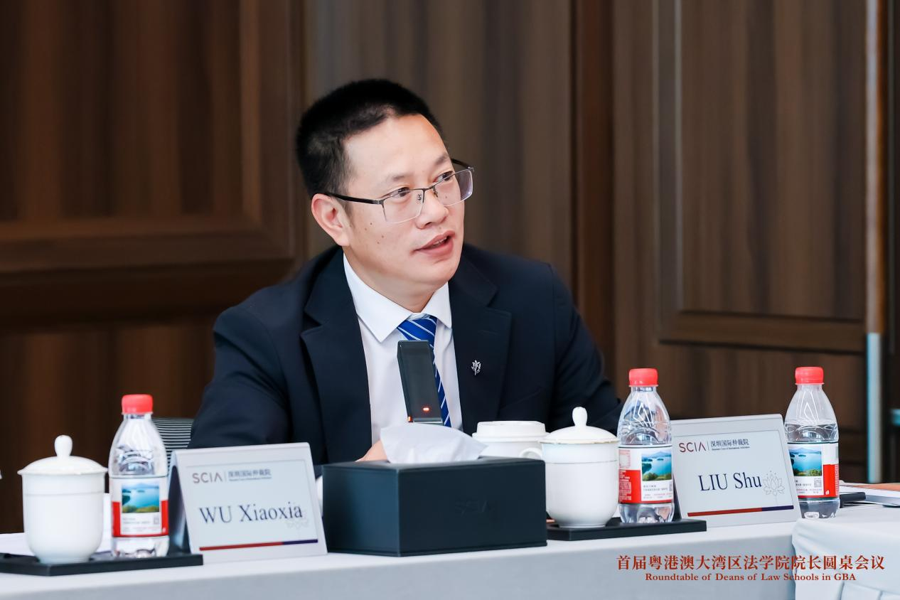 刘澍副院长在粤港澳大湾区法学院院长圆桌会议以“粤港澳大湾区涉外法治人才培养的几点思考”发言。他简要阐述了粤港澳大湾区涉外法治人才培养概况、发展阶段,在培养模式改进、办学资源获取、顶层制度设计、打通职业资质等方面提出了一些有见地的思考,并得到与会专家的高度认同。来自香港、澳门、广东共计 15家法学院的主要领导齐聚一堂、发表精彩观点,北京大学法学院作为特邀单位受邀参会并分享见解。本次圆桌会议聚焦仲裁事业发展、涉外法治人才培养等核心议题,为大湾区涉外法治高质量发展凝聚共识、贡献智慧。